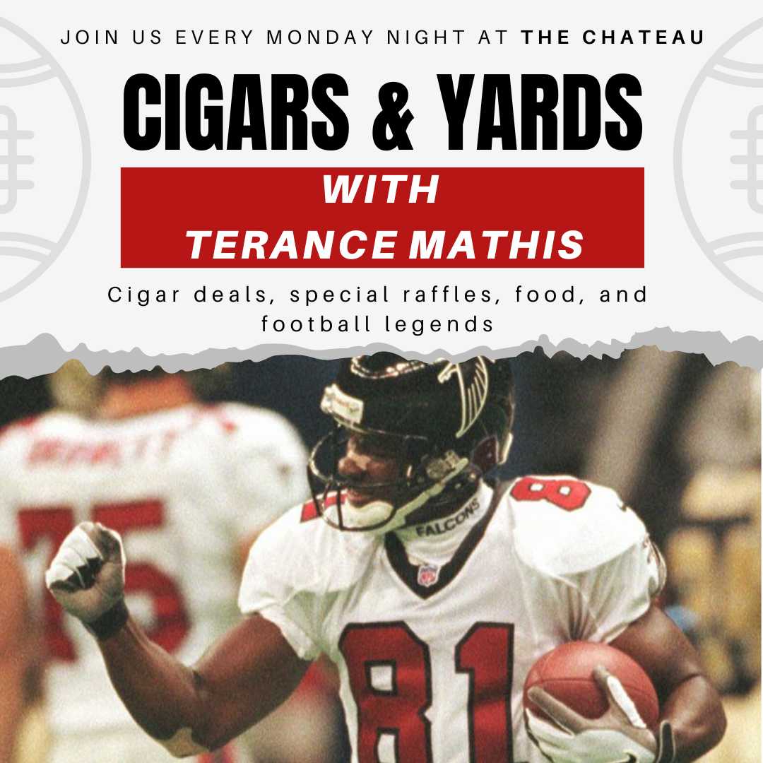 Join us every Monday night at The Chateau for Cigars & Yards, hosted by NFL legend Terance Mathis! Tailgating and pre-game will start at 7:30 p.m. and kickoff is at 8:20 p.m.