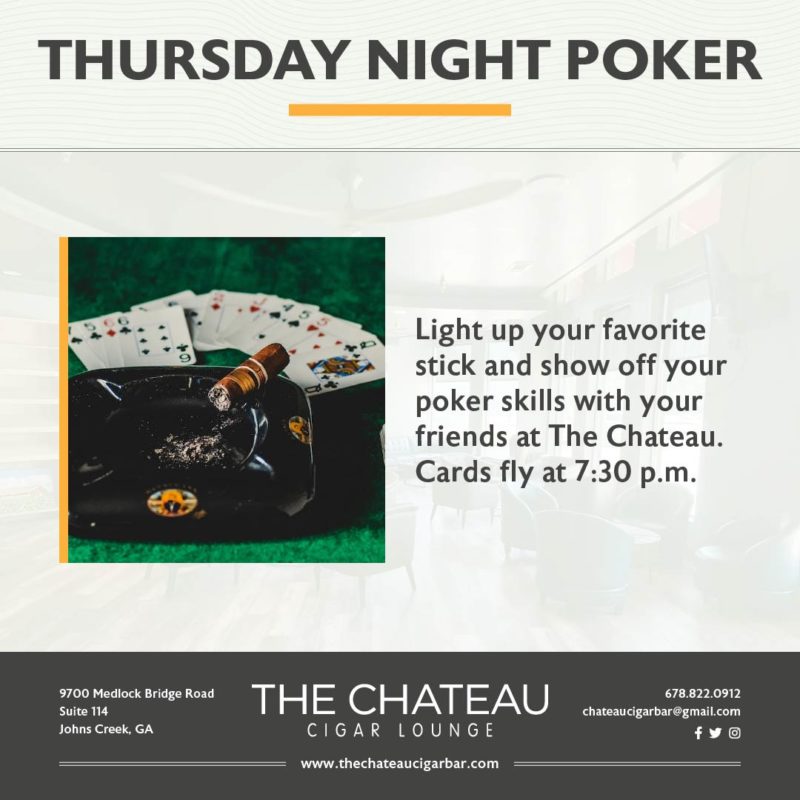 Join us every Thursday for Texas Hold 'Em poker. Cards fly at 7:30 p.m.
